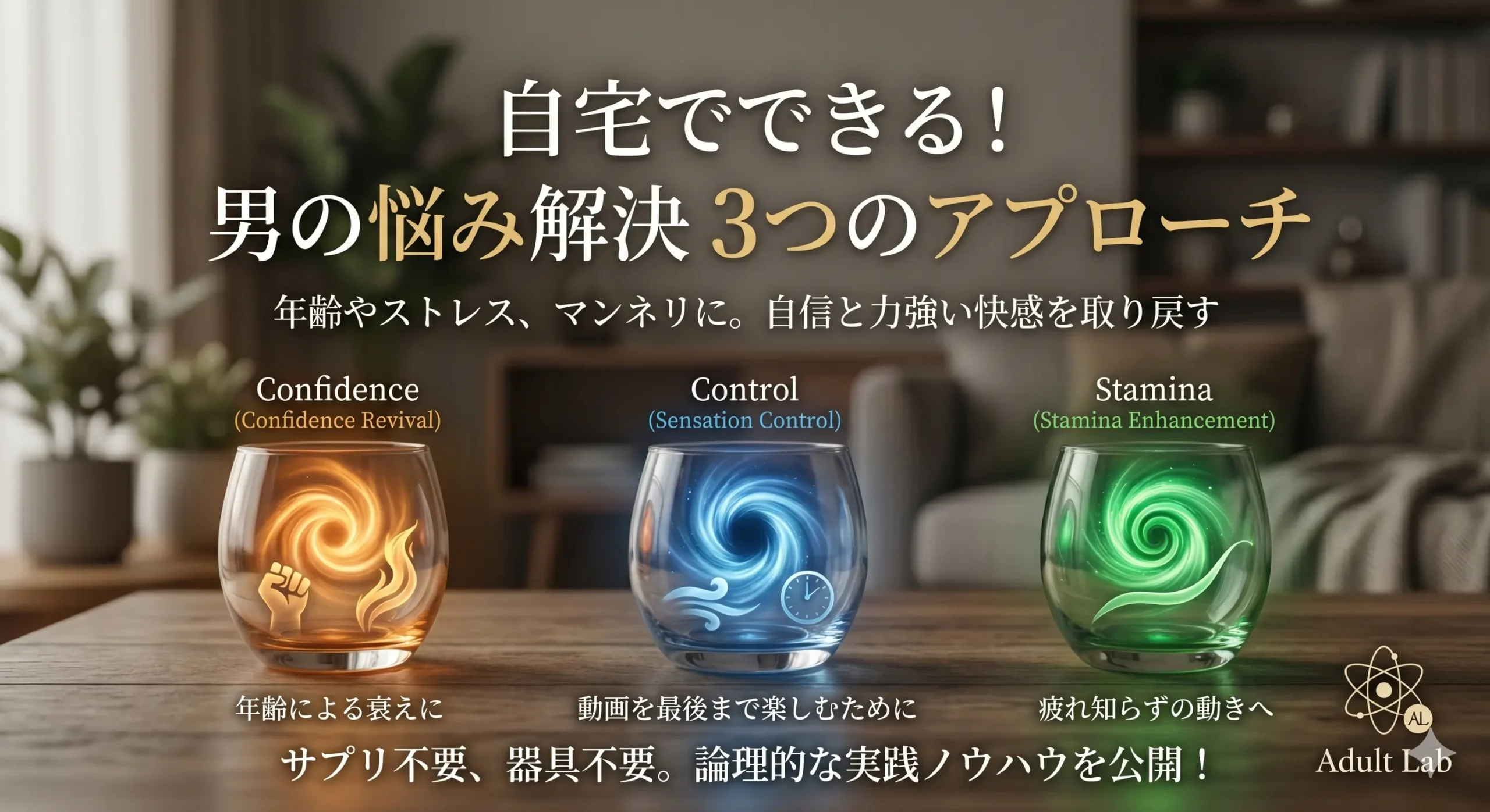 Adult Labの「男の悩み解決」カテゴリーへようこそ。 ここは、年齢やストレス、あるいは「いつものやり方」へのマンネリ化によって生じる、男性特有のデリケートな悩みを論理的に解決するための実践クリニックです。