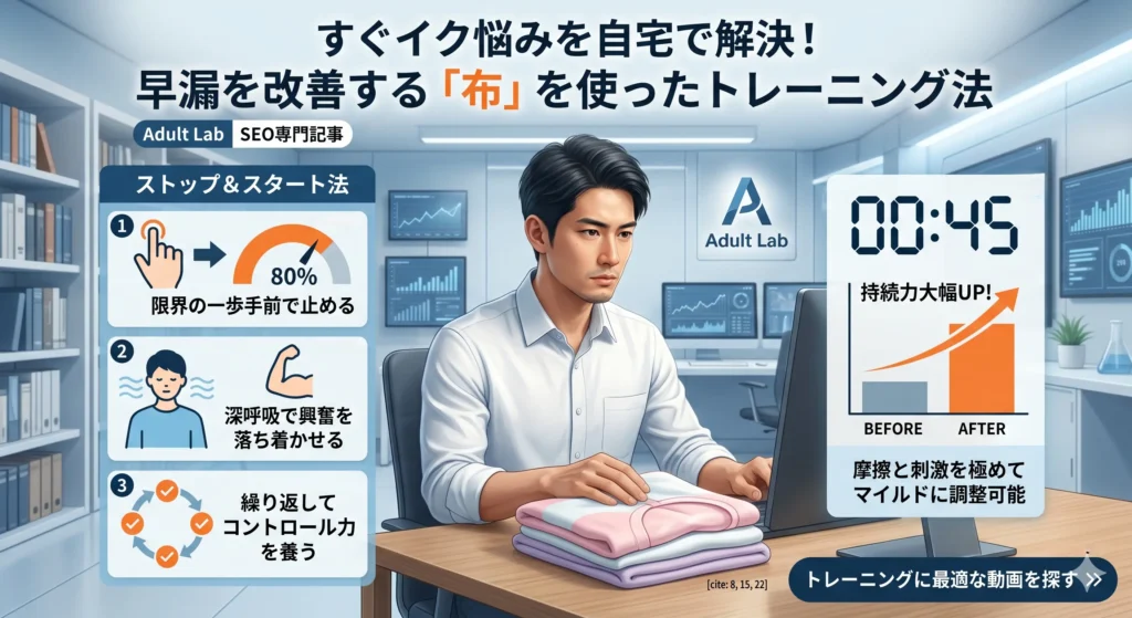 📝 読むべき記事: >> すぐイク悩みを自宅で解決!布を使った早漏改善トレーニング法